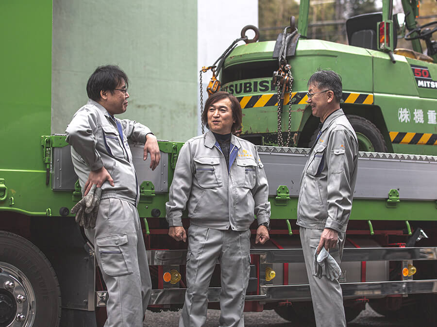 軽い機械から50tにも及ぶ重いものまで、幅広いニーズに対応可能です。作業前に道具の選定や打ち合わせを行ったうえで、ムリなく作業を進めていきます。 -